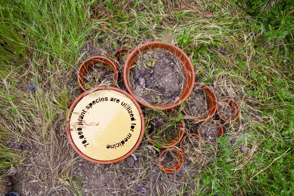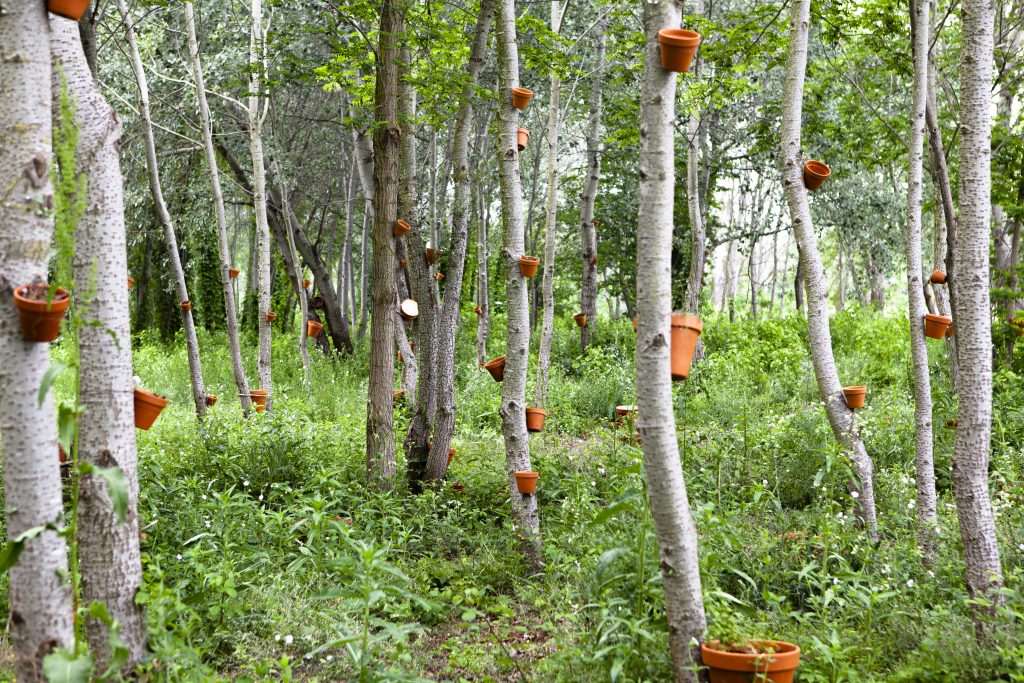 The installation takes the form of a natural park of about two thousand square meters where the pots are discovered by people during the walk as if they were archaeological finds.